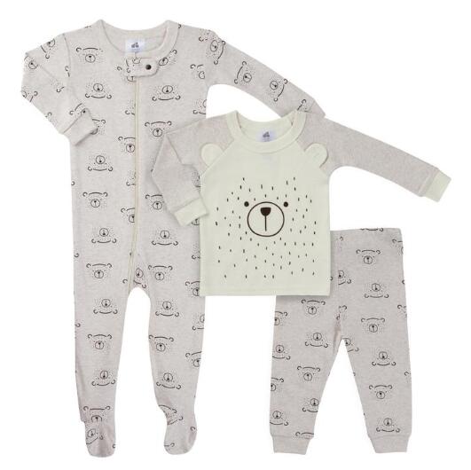 Baby and toddler pyjamas are created for comfort in play and sleep. The two or three piece pyjama set is lightweight and consists of an asymmetrical top and pants. An elasticised and drawstring waistband on the pants offers adjustable sizing for a snug fit.